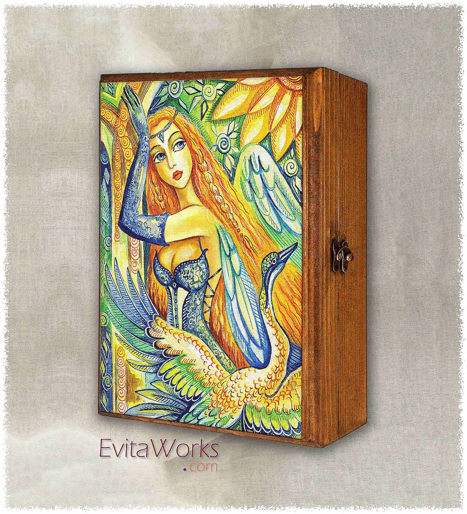 Fairy Woman And Swan Whimsical Folk Art Treasure Memories Etsy Uk